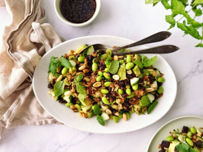 - Paista 225 asteessa 15 min. Mausta suikaleet inkivääri tahnalla ja chilihiutaleilla. Murustele suikaleet pellille viimeisen 2–3 minuutin ajaksi.